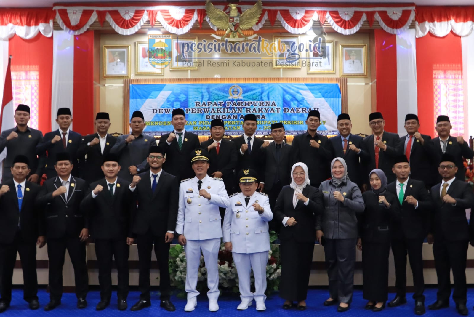 Bupati – Wakil Bupati Pesisir Barat (Pesibar), Dedi Irawan – Irawan Topani, S.H., M.Kn., menghadiri Rapat Paripurna Dewan Perwakilan Rakyat Daerah (DPRD) dengan agenda mendengar pidato pertama Bupati Pesibar masa jabatan 2025-2030, di ruang rapat paripurna DPRD Pesibar, Selasa (4/3/2025).