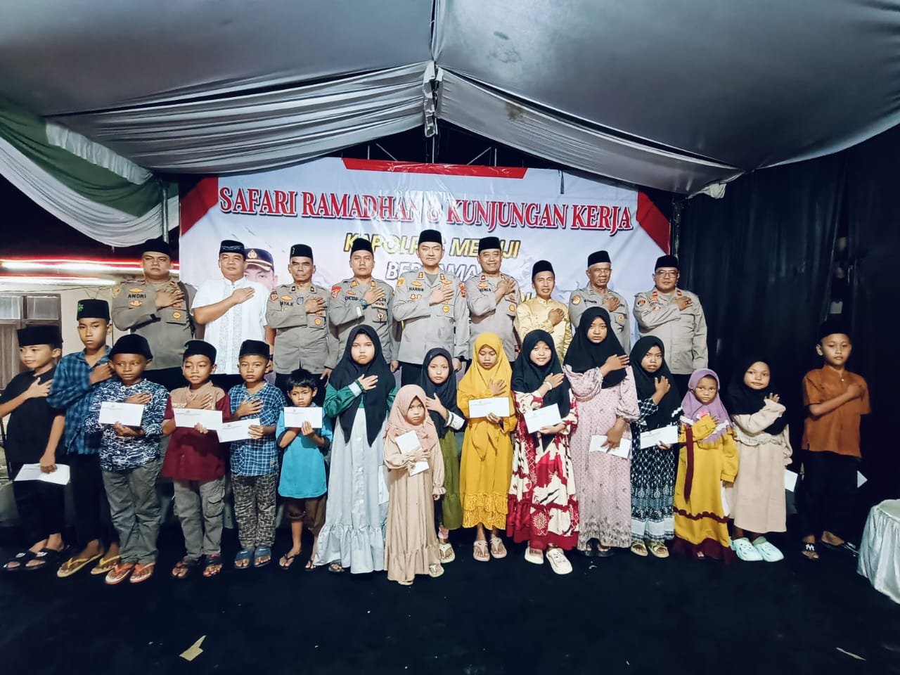 Kapolres Mesuji bersama Ketua Bhayangkari Cabang Mesuji melaksanakan Safari Ramadhan dan kunjungan kerja sekaligus santunan anak yatim di Mapolsek Mesuji Timur. Kamis (06/03/25)