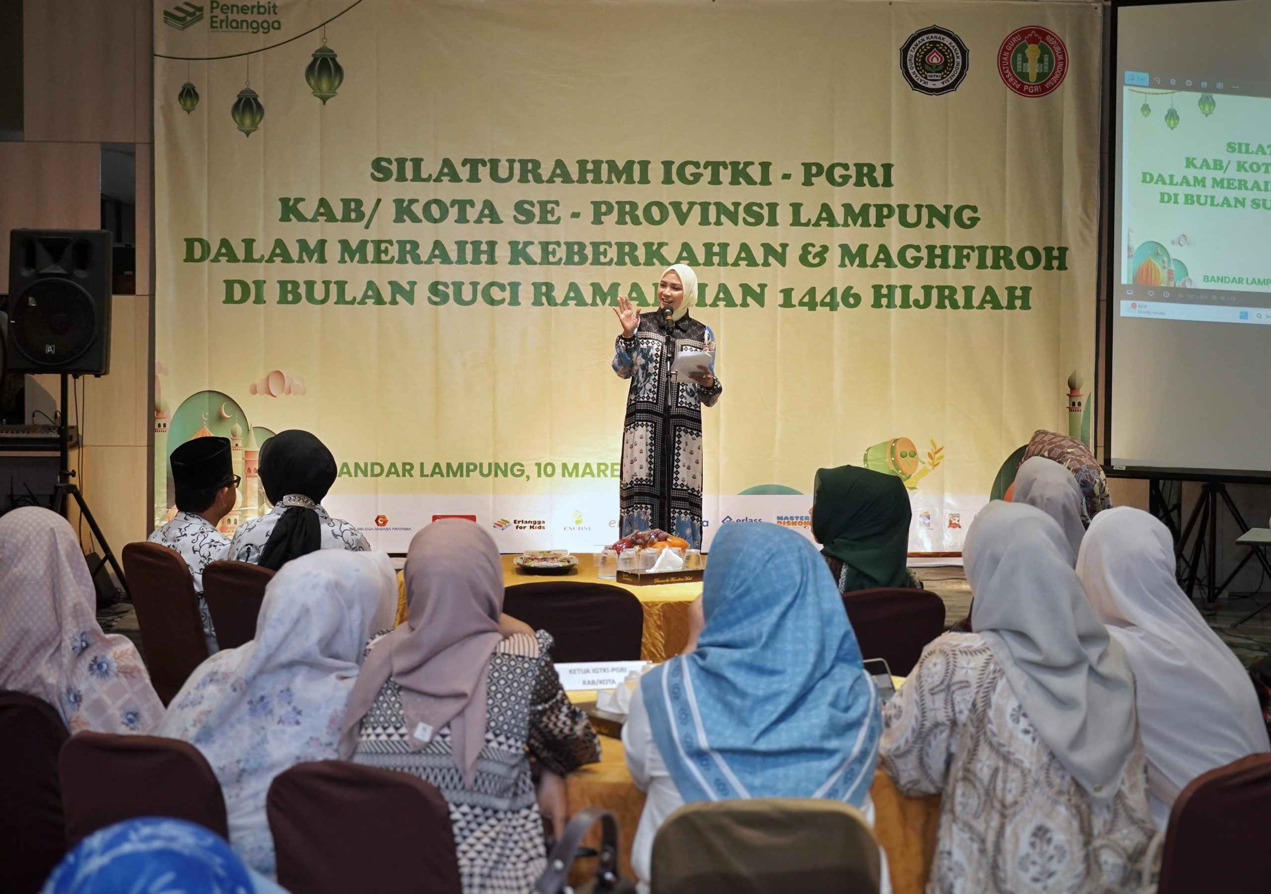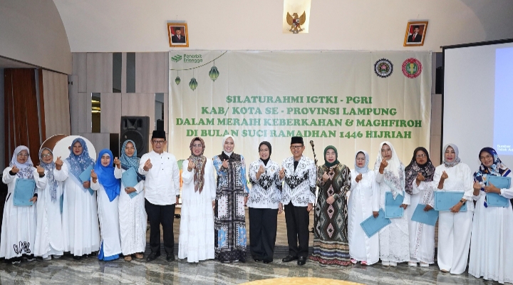 Bunda PAUD Provinsi Lampung, Purnama Wulan Sari Mirza menghadiri Silaturahmi Ikatan Guru Taman Kanak-Kanak Indonesia (IGTKI) – Persatuan Guru Republik Indonesia (PGRI) Kabupaten Kota se-Provinsi Lampung bertempat di Grand Anugerah Hotel, Minggu (09/03/2025).