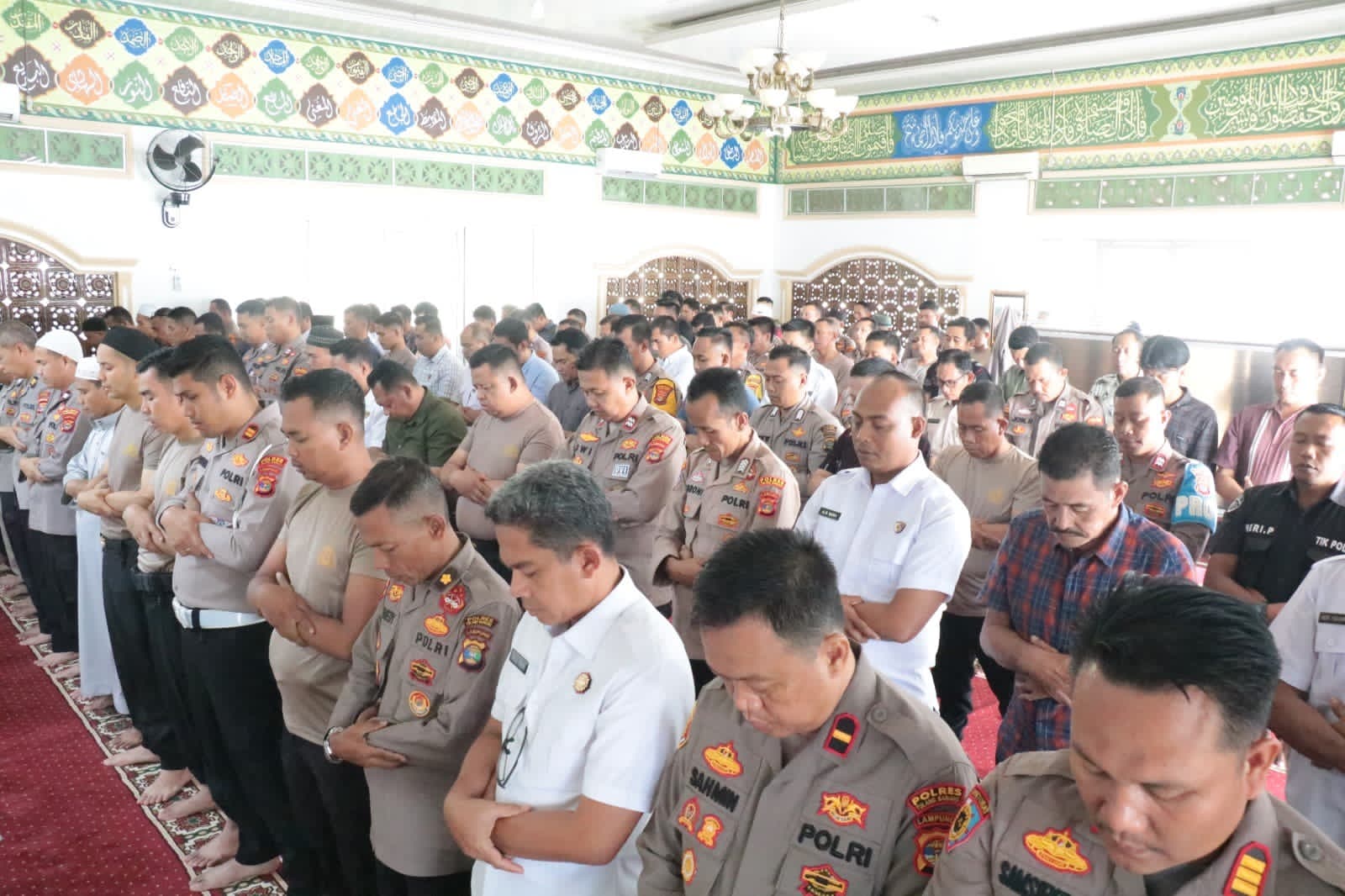 Kapolres Tulang Bawang, AKBP Yuliansyah, mengajak seluruh personelnya dan jamaah Masjid Darussalam untuk berdoa bersama sebagai bentuk penghormatan dan solidaritas terhadap sesama anggota Polri yang telah memberikan pengabdian terbaik dalam menjalankan tugas negara.