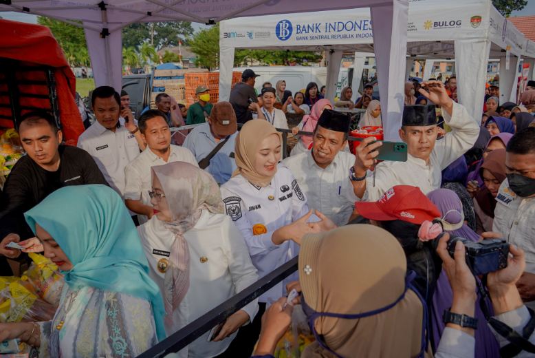Dalam kesempatan tersebut, Wagub Jihan turun langsung melayani masyarakat yang antusias mengantre untuk membeli berbagai bahan pokok yang dijual dengan harga terjangkau.