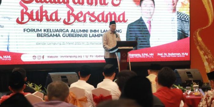 Gubernur Rahmat Mirzani Djausal dan Wakil Gubernur Jihan Nurlela menghadiri acara Silaturahmi sekaligus Buka Bersama Forum Keluarga Alumni Ikatan Mahasiswa Muhammadiyah (FOKAL IMM) Provinsi Lampung, di Hotel Emersia, Selasa (25/3/2025).