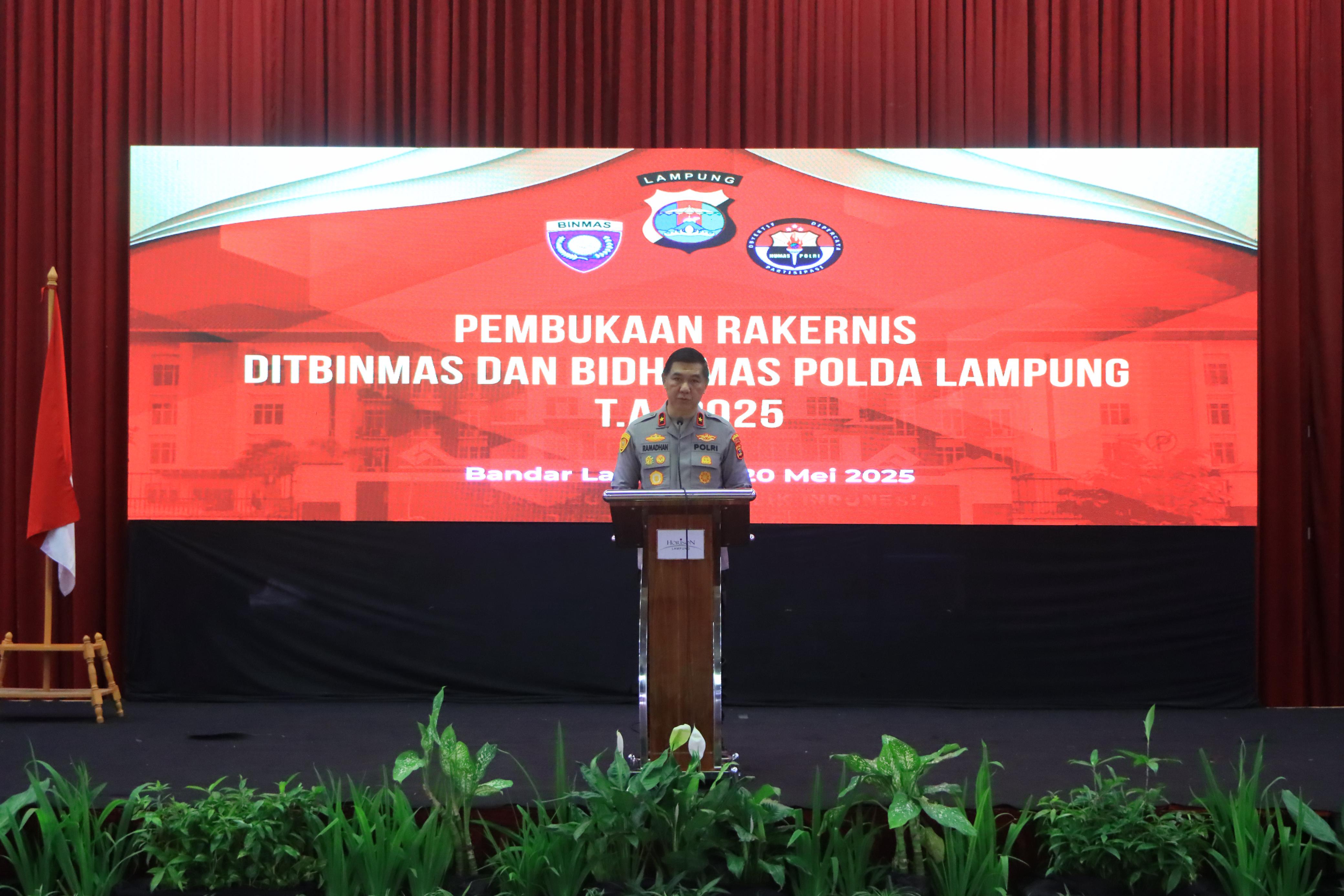 Hal tersebut disampaikan dalam kegiatan Rapat Kerja Teknis (Rakernis) gabungan Fungsi Binmas dan Fungsi Humas Polda Lampung dan jajaran Polresta/Polres yang digelar di Hotel Horison, Selasa (20/5/2025).