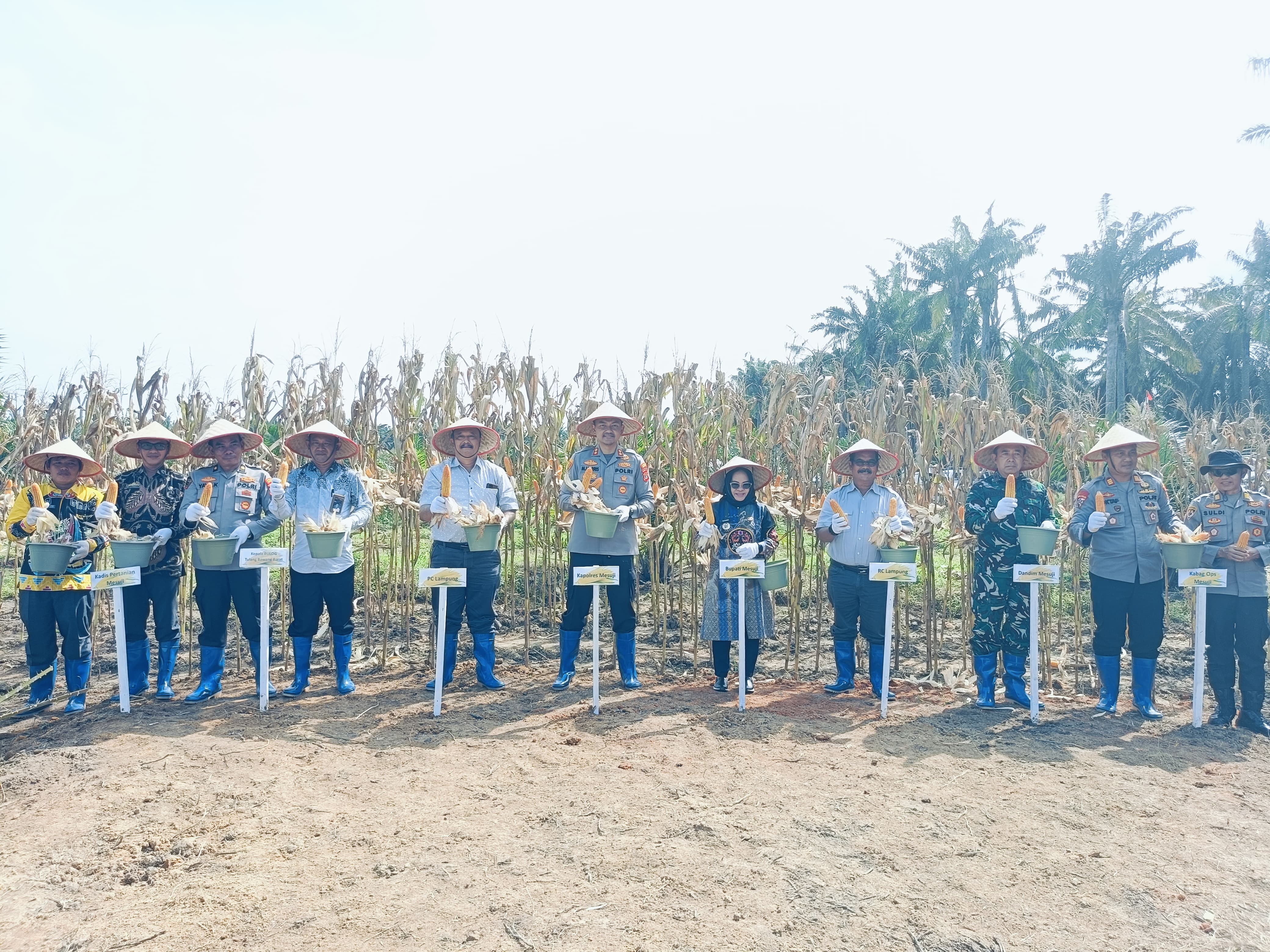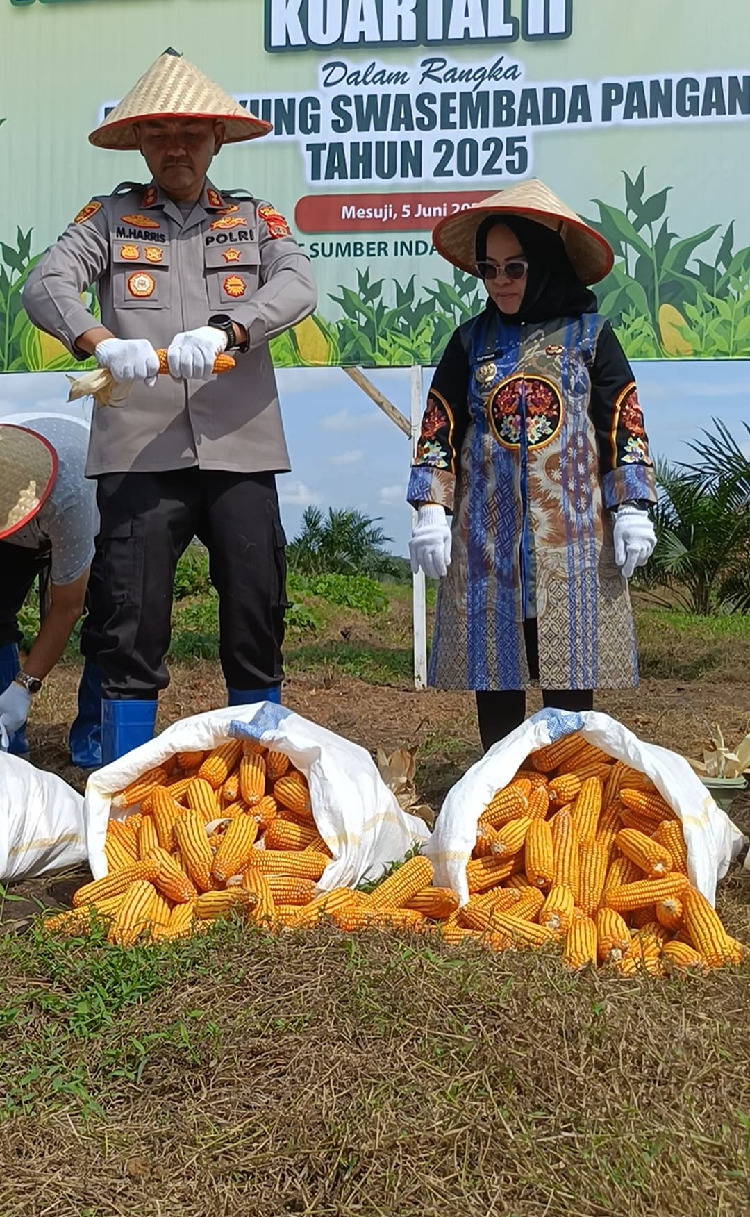 Kapolres Mesuji bersama Bupati Mesuji dan stakeholder terkait melaksanakan panen raya jagung serentak kuartal ke 2, bertempat di lahan perkebunan PT. SIP Desa Talang Batu, Kecamatan Mesuji Timur dan di Desa Agung Batin Kecamatan Simpang Pematang Kabupaten Mesuji. Kamis (05/06/25)