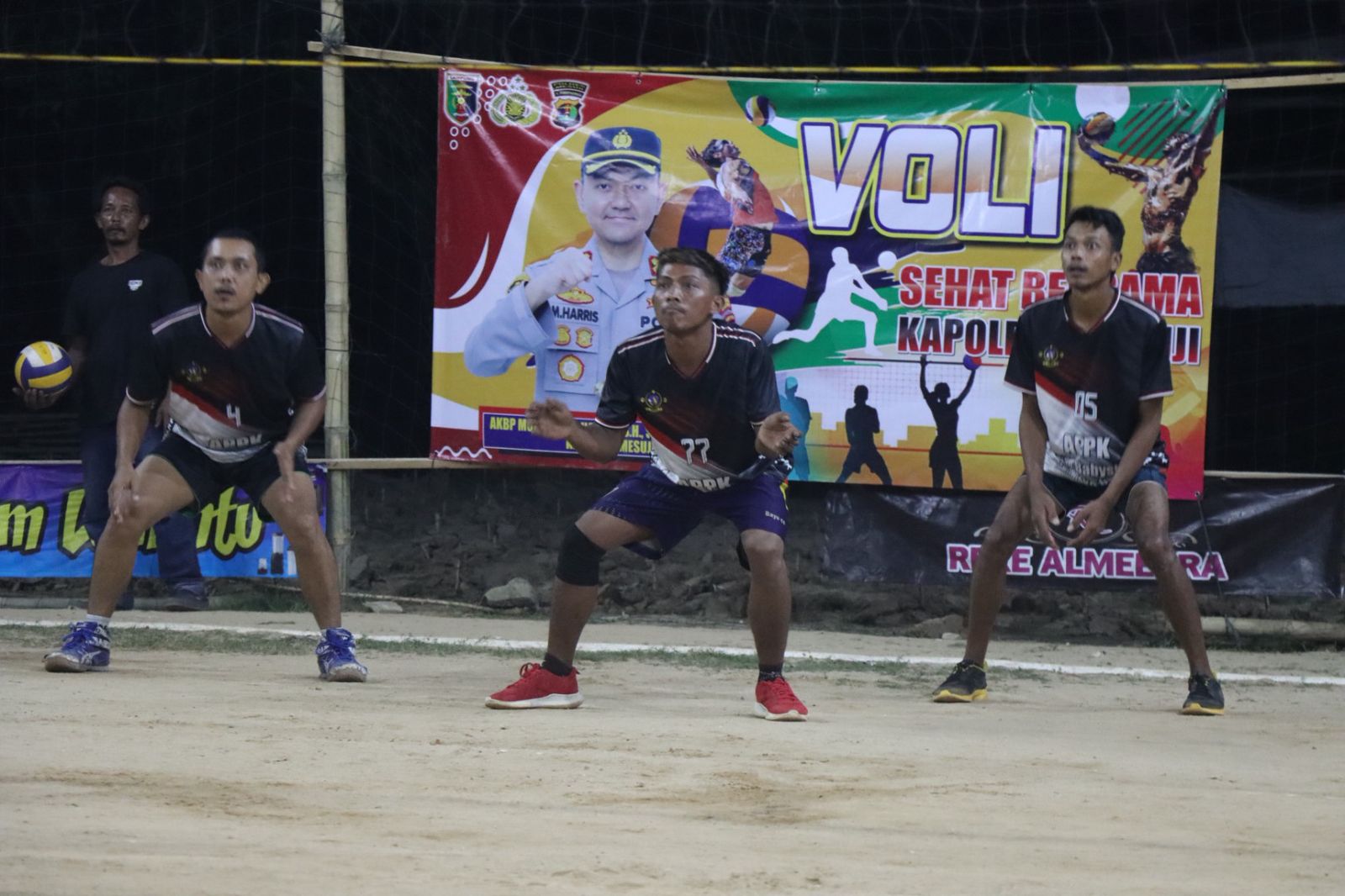 Kapolres Mesuji melaksanakan kegiatan Pembukaan pertandingan Voli Persahabatan dalam rangka Sehat Bersama Kapolres Mesuji dengan melakukan first Service. Rabu (11/06/25)