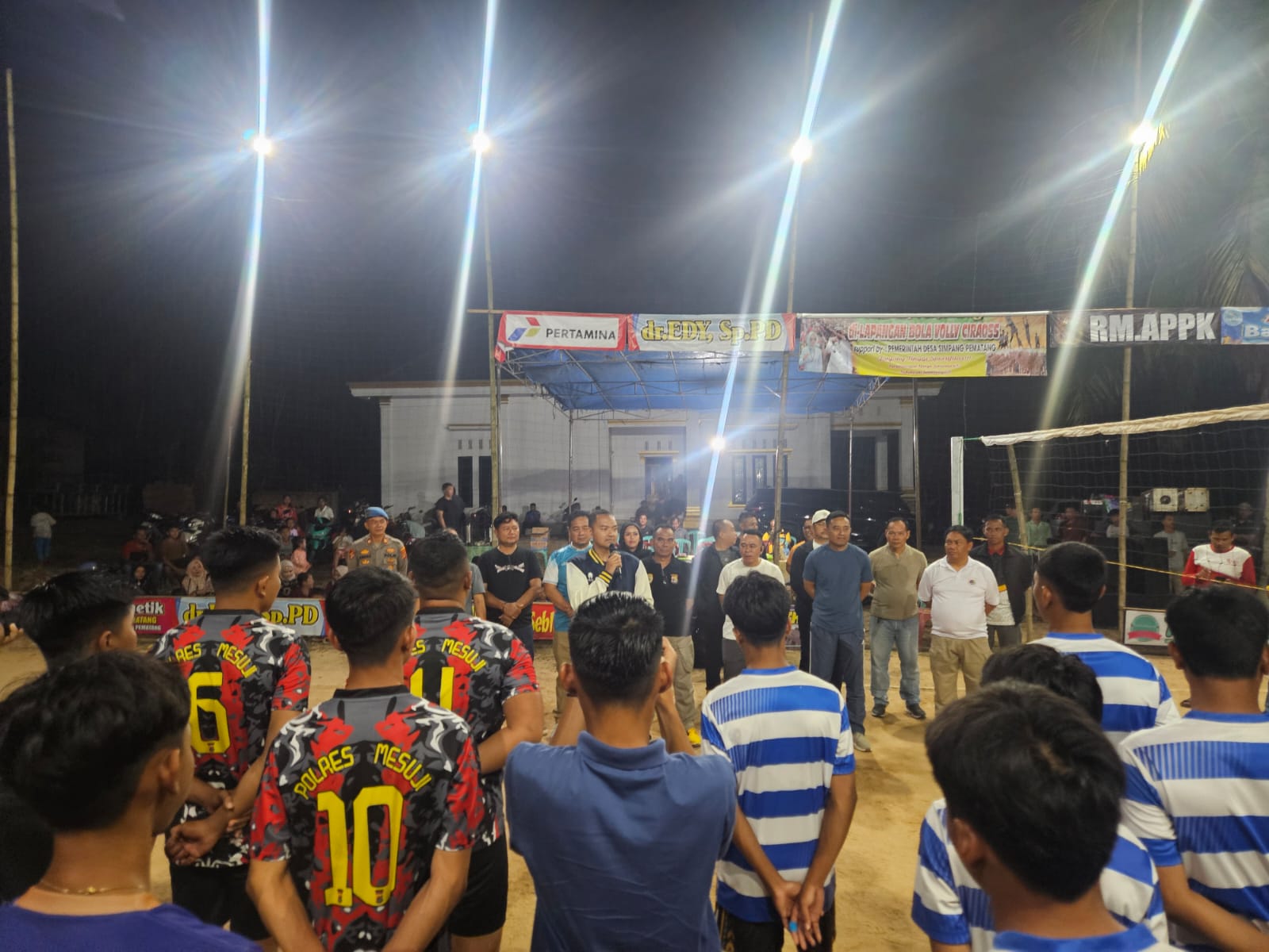 Hadir dalam giat Kapolres Mesuji AKBP MUHAMMAD HARRIS, S.H.,S.I.K.,M.I.K., CPHR, Waka Polres Mesuji KOMPOL HERU SULISTYANANTO, S.H.,M.H, Kabag SDM KOMPOL YAYA KARYADI, S.Ag., M.Si, Kabagren AKP RAHADI, S.H, Kasubagdalops AKP SUBUR. S.E, Kasat Samapta AKP YUSMAWARDI, S.H, Kasat Binmas AKP PONIRAN, Kapolsek Simpang Pematang AKP DEDI YOHANES, S.H.,M.H, Kasiwas AKP SUMADI, Kasat Lantas AKP YURIKE ADE PURWANTI, S.I.K, M.H, Ps. kasat Narkoba IPTU ANDY RUSWANDY, S.H., M.H, Ps. Kasi Propam IPTU ANDRE RIZAL, Panit Opsnal 1 Unit Reskrim IPDA FERDI SELFIAWAN, S.H., M.H, Camat Simpang Pematang M BELLY OSCAR,S.H.,M.H, Kades Simpang Pematang ABU SHALI dan Para pemain Voli.