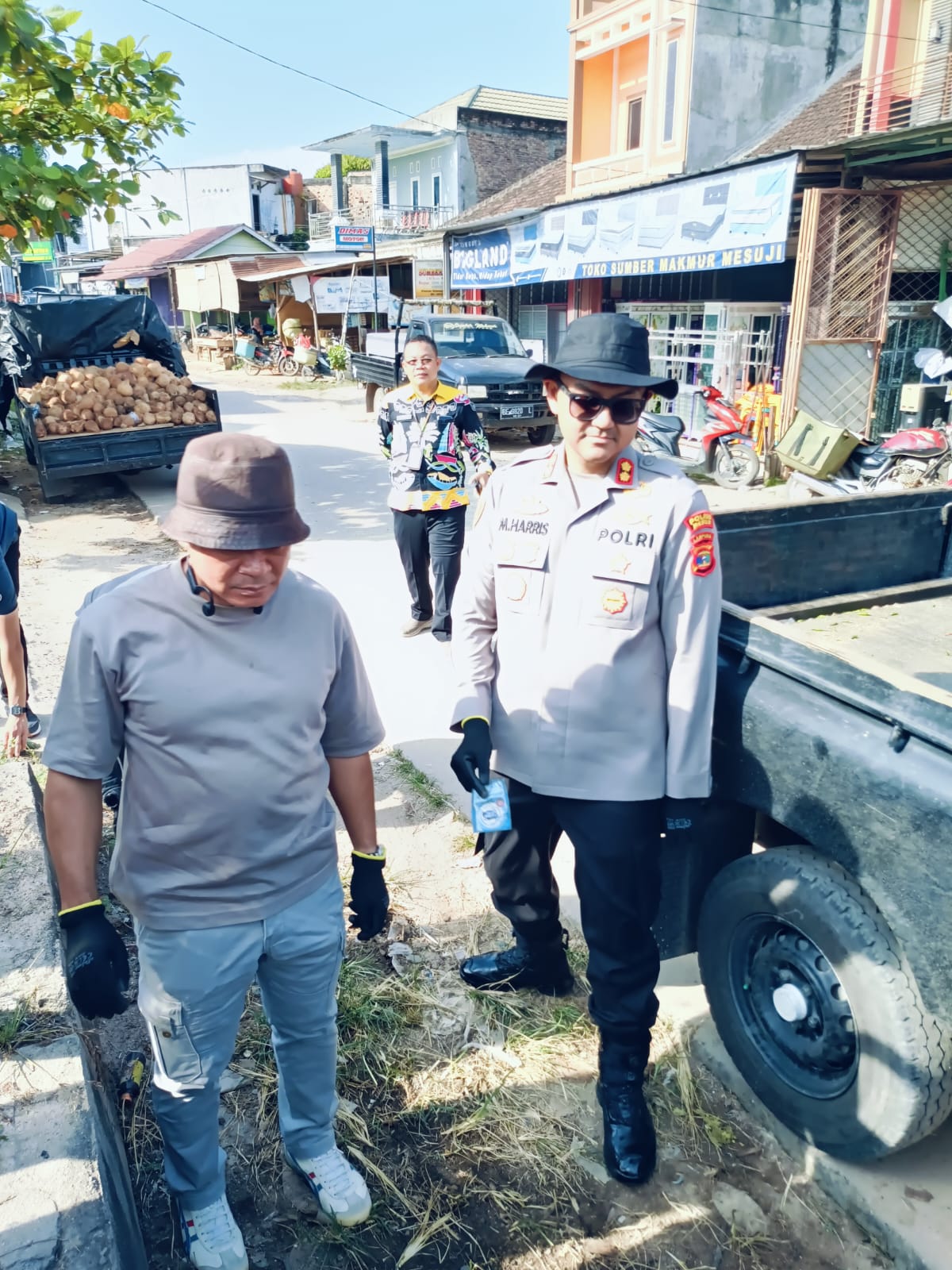 Ciptakan lingkungan bersih dan sehat, Kapolres Mesuji bersama Jajaran melaksanakan Bhakti Sosial dengan tema Bersih Peduli Humanis di sekitar Pasar Simpang Pematang, Kecamatan Simpang Pematang Kabupaten Mesuji.