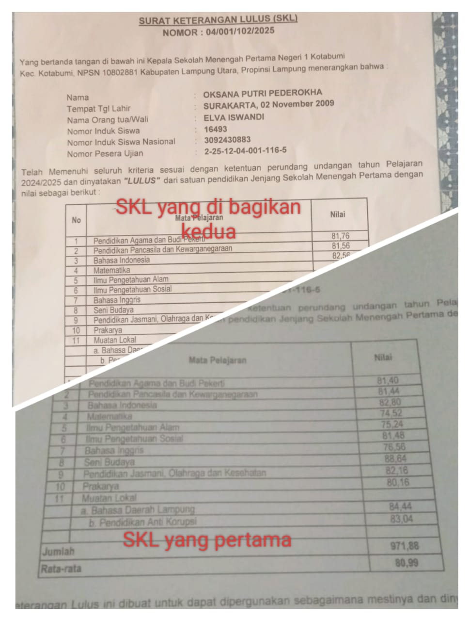 Lampung Utara Diduga surat keterangan lulus sekolah di SMPN 1 negeri Kotabumi kabupaten Lampung Utara mirip seperti penghitungan pada pemilihan umum atau Baca Selengkapnya