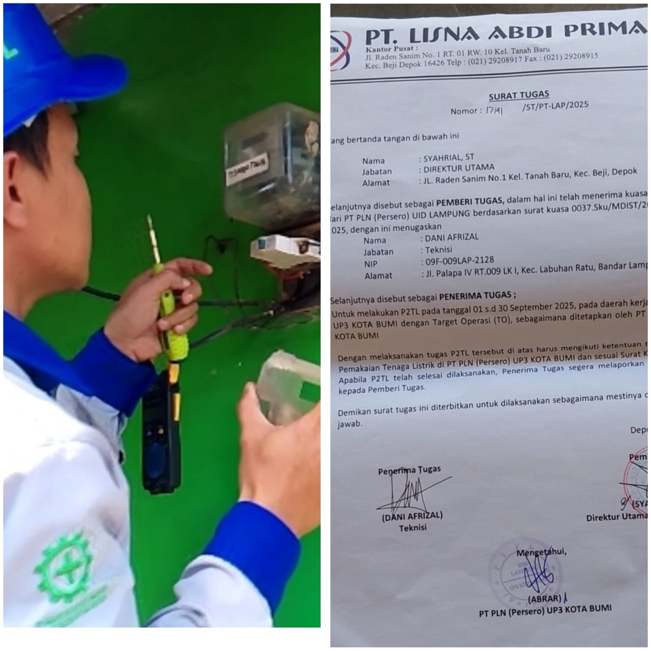 Kemudian kedua petugas tersebut menyodorkan surat perintah tugas dari Direktur PT Lisna Abdi prima,PT PLN (Persero) ABRAR UP3 Kotabumi tidak