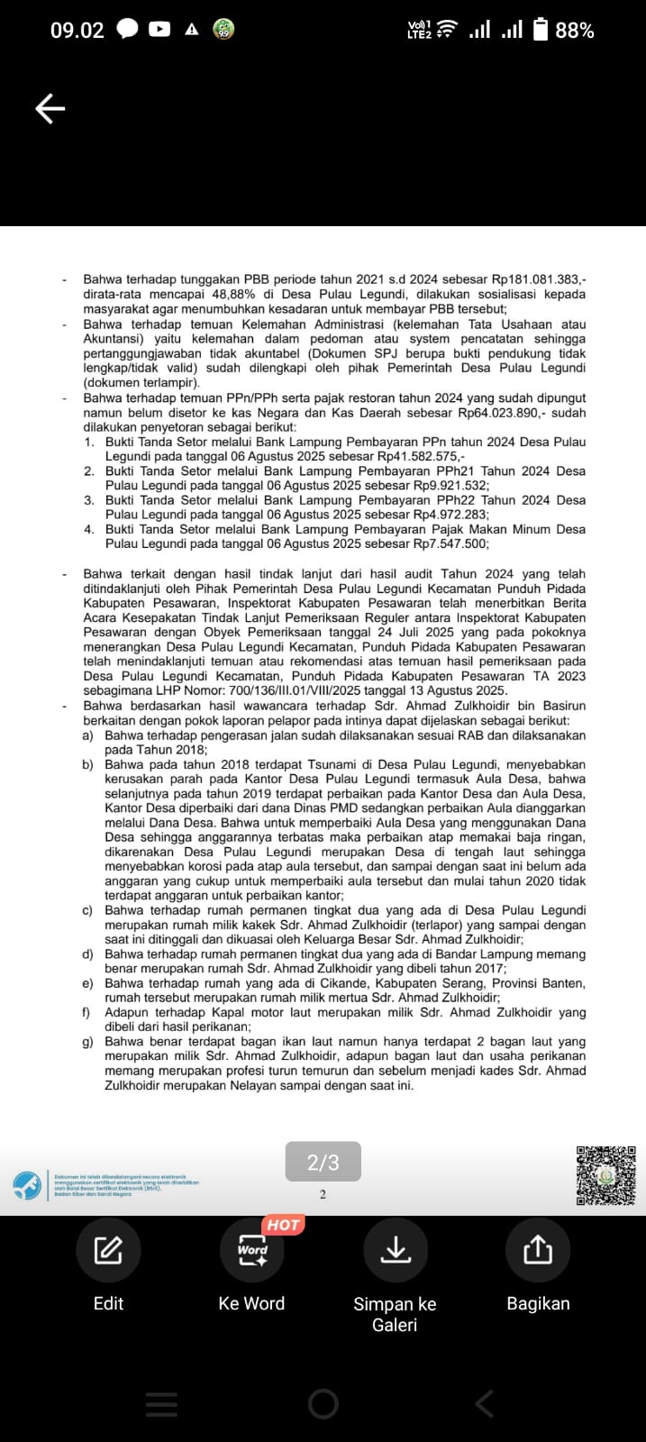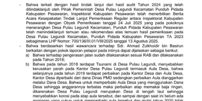 DIDUGA DI SELEWENGKAN OLEH OKNUM KEPADA DESA ACHMAD ZULKHOIDIR, SEHINGGA TIDAK MASUK AKAL SEHAT, KARENA DPW LEMBAGA PEDULI HUKUM LAMPUNG MELAKSANAKAN INVESTIGASI SELAMA TIGA HARI DI DESA PULAU LEGUNDI, JADI APA YG KAMI SERAP DAN KAMI LIHAT ADALAH FAKTA, BUKAN ASAL BUAT, DAN KAMI DI UNDANG OLEH WARGA MASYARAKAT DESA PULAU LEGUNDI.