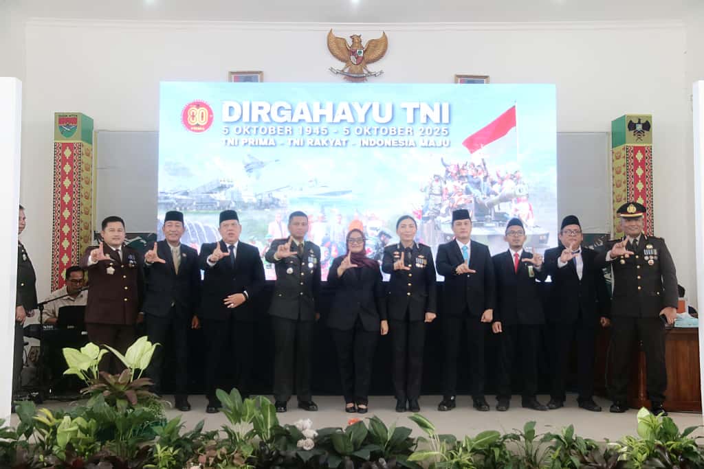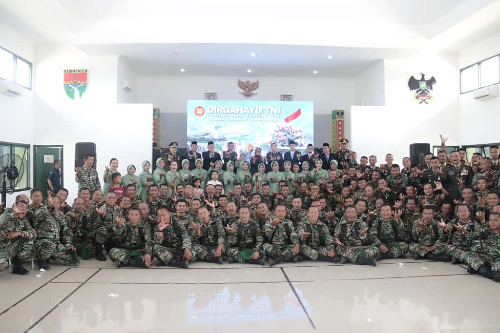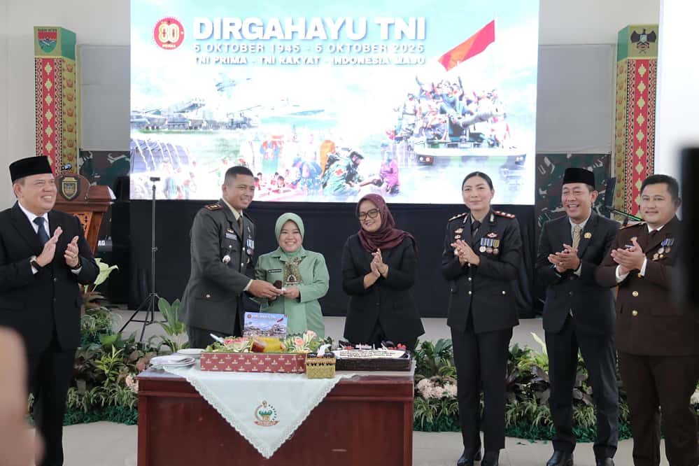 Selanjutnya dilanjutkan dengan syukuran peringatan HUT TNI Ke-80 bertempat di Aula Gatot Subroto Makodim. Pada kesempatan tersebut Bupati Ela Siti Nuryamah menyampaikan,