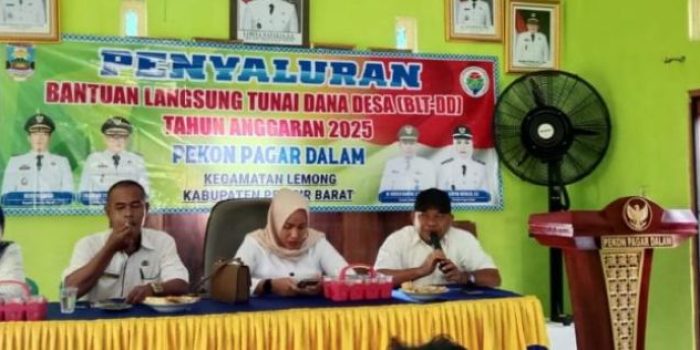 Pemerintah Pekon Pagar Dalam Kecamatan Lemong, Kabupaten Pesisir Barat, menyalurkan Bantuan Langsung Tunai Dana Desa (BLT-DD) Trhitung 7 bulan Tahun 2025 kepada 15 Keluarga Penerima Manfaat (KPM). Penyaluran dilakukan di Balai Pekon Pagar Dalam pada tanggal 4/6/2025.