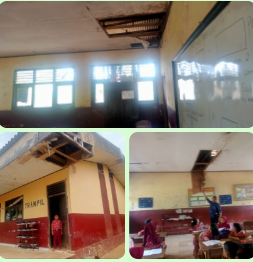 Bangunan nya sudah nyaris roboh, plafon sudah banyak yang jebol, para dewan guru dan anak didik pun mengalami kesulitan untuk belajar dan mengajar, karna keadaan gedung banyak yang bocor, juga sangat mengerikan takut rontok saat hujan turun bisa saja plafon-plafon itu tertimpa Anak-anak saat belajar ,”ujarnya