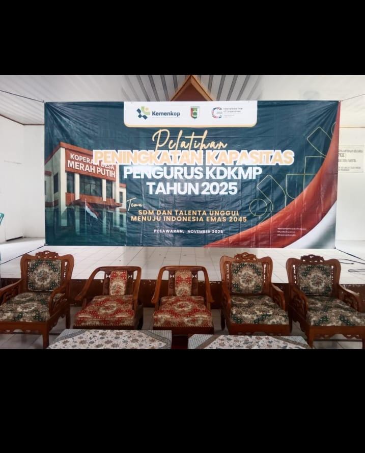 Guna memperkuat tata kelola dan kapasitas kelembagaan koperasi di tingkat desa, Koperasi Desa Merah Putih bekerjasama dengan Kementerian Koperasi dan UKM RI menggelar kegiatan Sosialisasi Peningkatan Kapasitas Koperasi kepada anggota serta calon pengurus koperasi desa se-Kabupaten Pesawaran. Kegiatan ini berlangsung di Balai Desa Hanura, Kecamatan Teluk Pandan, Kabupaten Pesawaran, pada Selasa (25/11/2025).