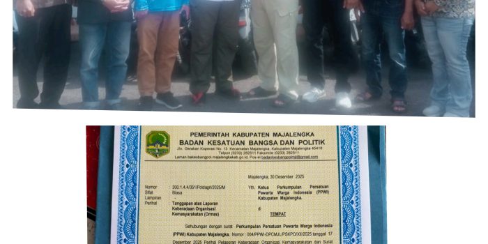 “Dengan diserahkannya bukti terdaftar oleh Kesbangpol Kabupaten Majalengka, kedudukan administratif DPC PPWI Kabupaten Majalengka menjadi sah dan terlegitimasi, sehingga seluruh aktivitas organisasi memiliki dasar hukum yang jelas dan dapat dipertanggungjawabkan secara institusional,” ujarnya.