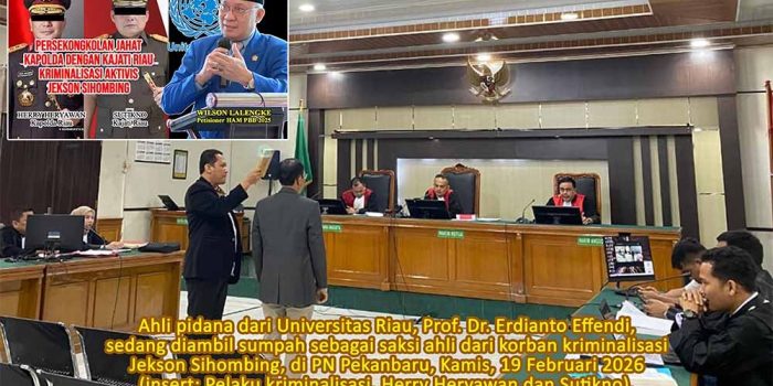 Kriminalisasi Jekson Sihombing oleh aparat hukum di Riau, yang dimulai dari konspirasi Kapolda Riau Herry Heryawan dengan perusahaan perusak hutan dan pelaku korupsi, Surya Dumai Group, dilanjutkan oleh Kepala Kejati Riau, Sutikno, memperlihatkan bagaimana hukum bisa disalahgunakan jika tidak dijalankan dengan integritas. Inkonsistensi ahli, keterangan saksi yang bertentangan, dan kriminalisasi demonstrasi adalah tanda bahwa hukum sedang kehilangan arah.