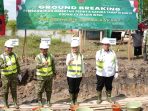 Dalam suasana penuh semangat, Wakil Gubernur Lampung bersama jajaran TNI mengenakan alat pelindung diri lengkap saat melakukan pengecoran pondasi pertama. Momen ini disambut antusias oleh warga yang berharap pembangunan segera rampung.