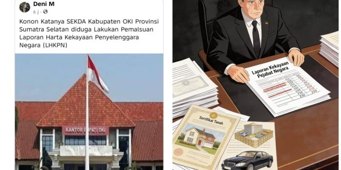 Kayuagung – Dugaan pemalsuan Laporan Harta Kekayaan Penyelenggara Negara (LHKPN) yang dilakukan oleh Sekretaris Daerah (Sekda) Kabupaten Ogan Komering Ilir (OKI) Provinsi Sumatra Selatan menjadi sorotan publik setelah diungkapkan melalui akun media sosial Facebook milik Deni M. Keterangan tersebut kemudian dibagikan ke beberapa grup masyarakat di wilayah OKI.