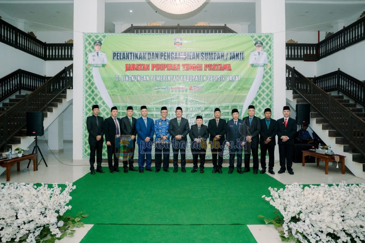 Bupati Pesisir Barat, Dedi Irawan, secara resmi melantik Pejabat Pimpinan Tinggi Pratama di lingkungan Pemerintah Kabupaten Pesisir Barat. Prosesi pelantikan berlangsung di Lobi Utama Teluk Stabas, Gedung Marga Sai Batin, pada Jumat (17/04/2026).